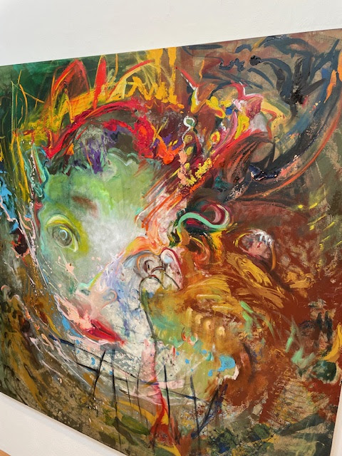 これは顔であろうか。一見、龍のようでもある。しかし、これまでの作品の文脈から人物かもしれない。これもまた絵の具を絞り出しエモーショナルに感情に訴えかけるようにエネルギーを噴火させている。人物が二人いる。なんだか仲良しに見える。そして、平和的にさえ見える。